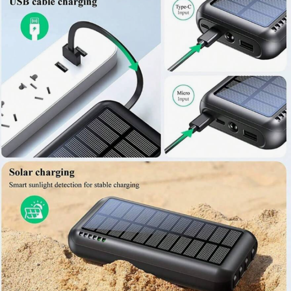 Power-Bank-Solar-Portable-Charger – 40000mAh Power Bank Large Capacity Built In 3 Output And 1 Input Cables And Flashlight 5V3.1A Fast Charger Compatible With All Smart Phones And Devices,Large Storage Capacity, Portable, Solar Emergency Charging, Multiple Output Ports
